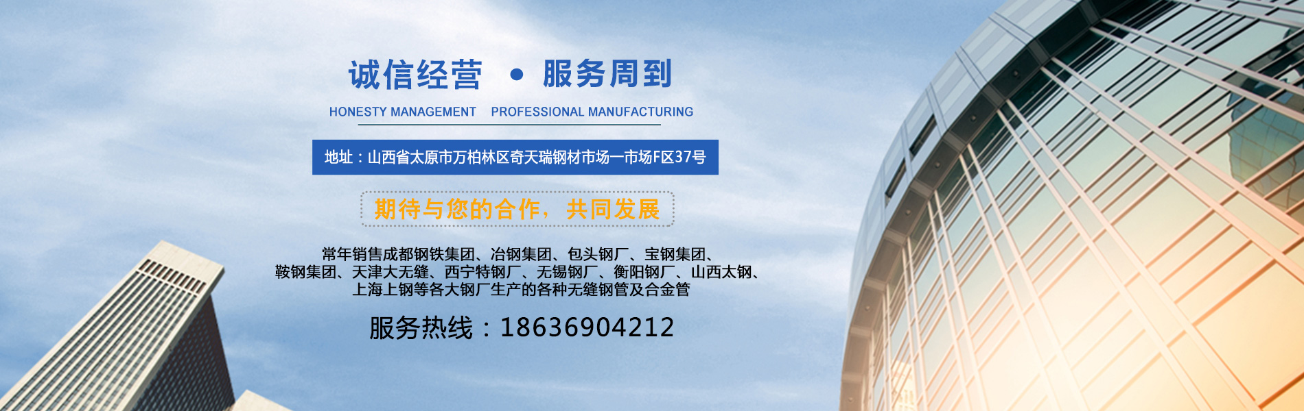 山西衡泰尚盈貿(mào)易有限責(zé)任公司是集生產(chǎn)加工經(jīng)營(yíng)于一體的無(wú)縫鋼管、不銹鋼管、合金管、鍋爐管、液壓支柱管、方管、方矩管、不銹鋼板等的大型企業(yè),常年銷售成都鋼鐵集團(tuán)、冶鋼集團(tuán)、包頭鋼廠、寶鋼集團(tuán)、鞍鋼集團(tuán)、天津大無(wú)縫、西寧特鋼廠、無(wú)錫鋼廠、衡陽(yáng)鋼廠、山西太鋼、上海上鋼等各大鋼廠生產(chǎn)的各種無(wú)縫鋼管及合金管。